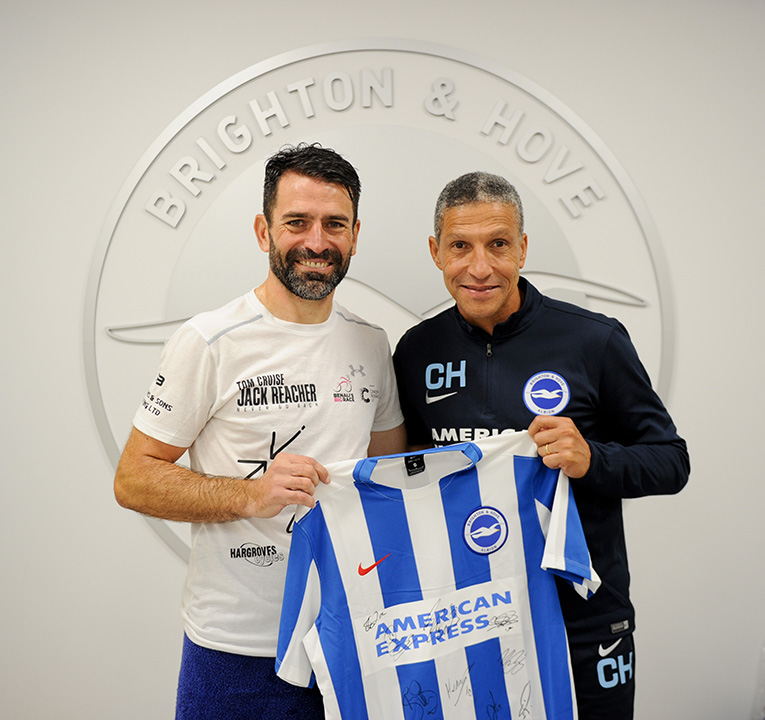 His penultimate leg took him from Reading to Brighton via Crystal Palace where he was met by Chris Hughton and Mark Bright respectively - and now he has just one more stretch to complete.
