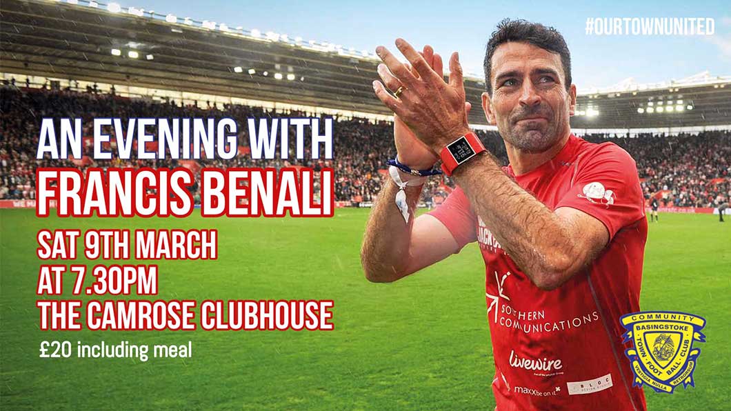 Franny Benali will be relaying his Football career and previous challenges with Basingstoke Town FC on 9th March at 7:30pm.
